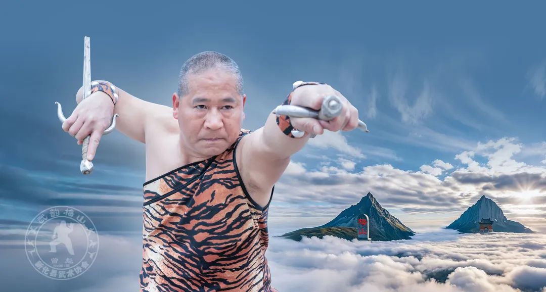 梅山腹地新化县为全国著名武术之乡,新化曾氏练武之风自宋时泰谕公迁来时就开始了,历史上新化曾姓出了四个武举。而科头乡曾彪家族的习武传统可追溯至清代。据传祖上六老公公曾随曾国藩办团练传授功夫,一柄128斤大刀闯荡江湖、行侠仗义,更以“封刀接骨”的医术悬壶济世,尤擅长无名肿毒、跌打损伤。曾彪爷爷就是六老公公四位徒弟中最为器重的一位,家风严谨,仁义好施,为百姓治疗不取分文。这份融武医于一体的家学,使得曾彪幼年时便跟随民间传统武师习武:四岁扎马步,五岁练拳脚,田间地头皆成练功场。青少时代最喜欢做的事,就是在放牛的时候,常常板着两只牛角和牛较劲,直到把牛扳翻为止。
