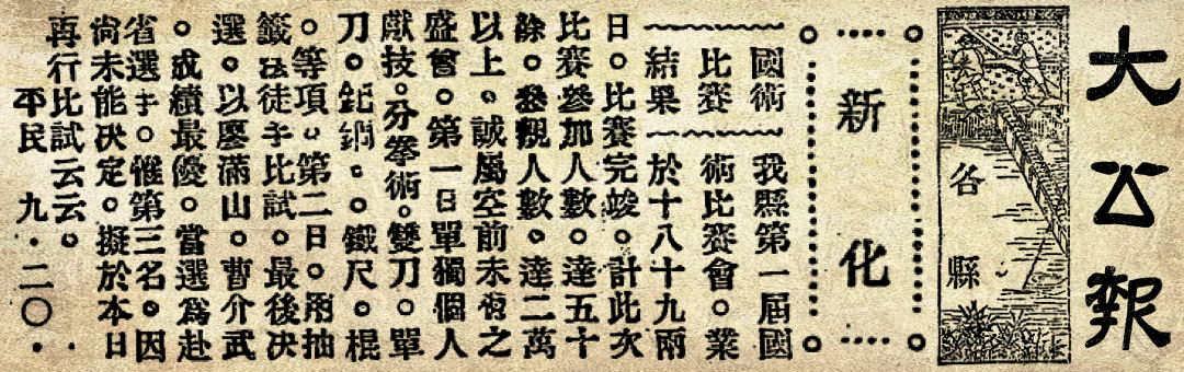 功夫不负有心人,经过多方寻找,终于找到一张当年来新化的挪威信义会传教士拍摄的照片,此照片拍摄于信义会医院外边的田地里,标注为“体育赛事,中国湖南新化,1932年,新化传教站外”。通过查阅民国时的各种报刊得知,照片中的事件是新化县首届国术比赛,比赛日期是1932年9月18日和19日,此次比赛,是为选拔优秀武术人才前往省会长沙参加湖南省第二届国术比赛。