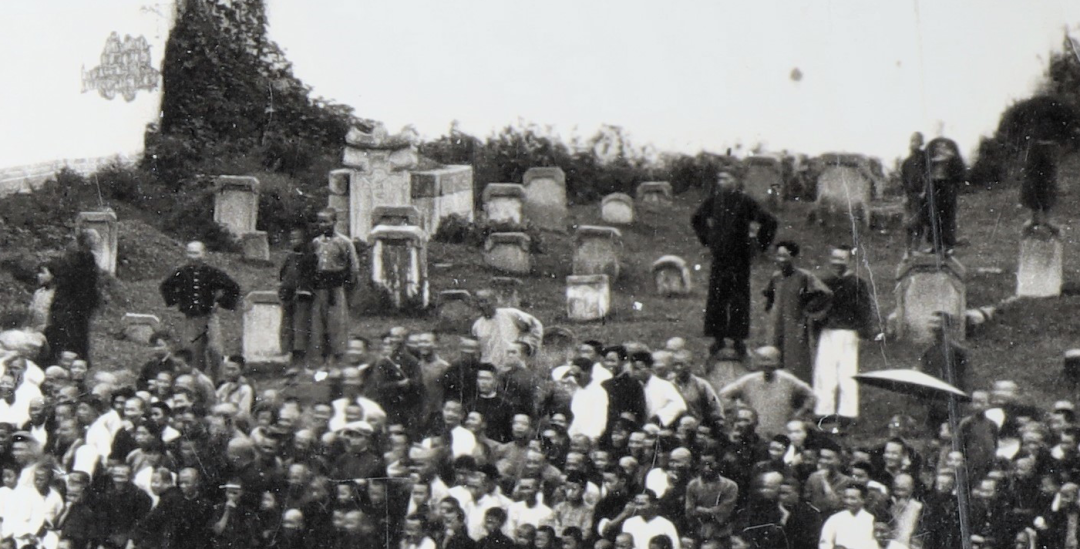 照片上右边信义会建筑围墙外和小路间有一片坟山,如果再往画面右边走,就将到达易婆山、崇阳岭,三义阁就在那里。(点击阅读:三义阁唯一留存影像:见证塔影胜境,探秘消失原因!)